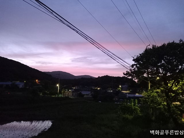 살짝 고되지만 즐겁게 농사일을 마치고 농장에서 집으로 걸어내려왔습니다. 오늘따라 저녁놀이 참 아름답습니다. 내일 꾸러미 발송 작업이 기다려집니다.